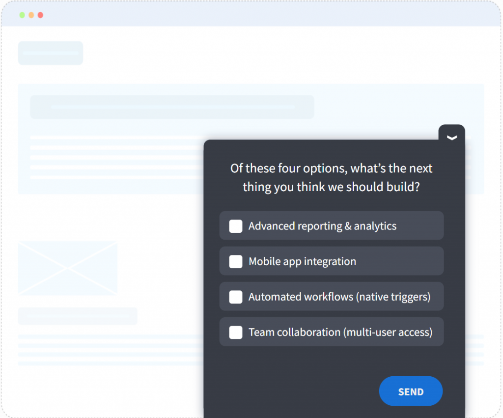 Survey launch timing matters. It helps to collect contextual data from the customers. So set up appropriate triggers to show the survey at the right moment to the right people.